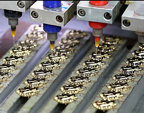烤漆是在徽章制造中的一種噴漆制作方法(工藝)。其方法是:在打磨到一定粗糙程度的基底上滴上若干層亞克力油漆。并經(jīng)高溫烘烤定型。 該工藝目前對(duì)油漆要求較高,顯色性好。烤漆徽章的制作材料一般為銅、鐵、鋅合金等,其中以鋅合金、鐵質(zhì)、青銅用的最多,其表面多具有明顯的凹凸感,質(zhì)感好,適合一些中高檔徽章的制作。制作流程:設(shè)計(jì)制圖——出黑(凸起)白(凹下)菲林——曬版——咬版——刻模——切模——沖壓——拋光——電鍍——焊配件——上色(烤漆)——加波麗——烘干——品檢——包裝——出貨。
