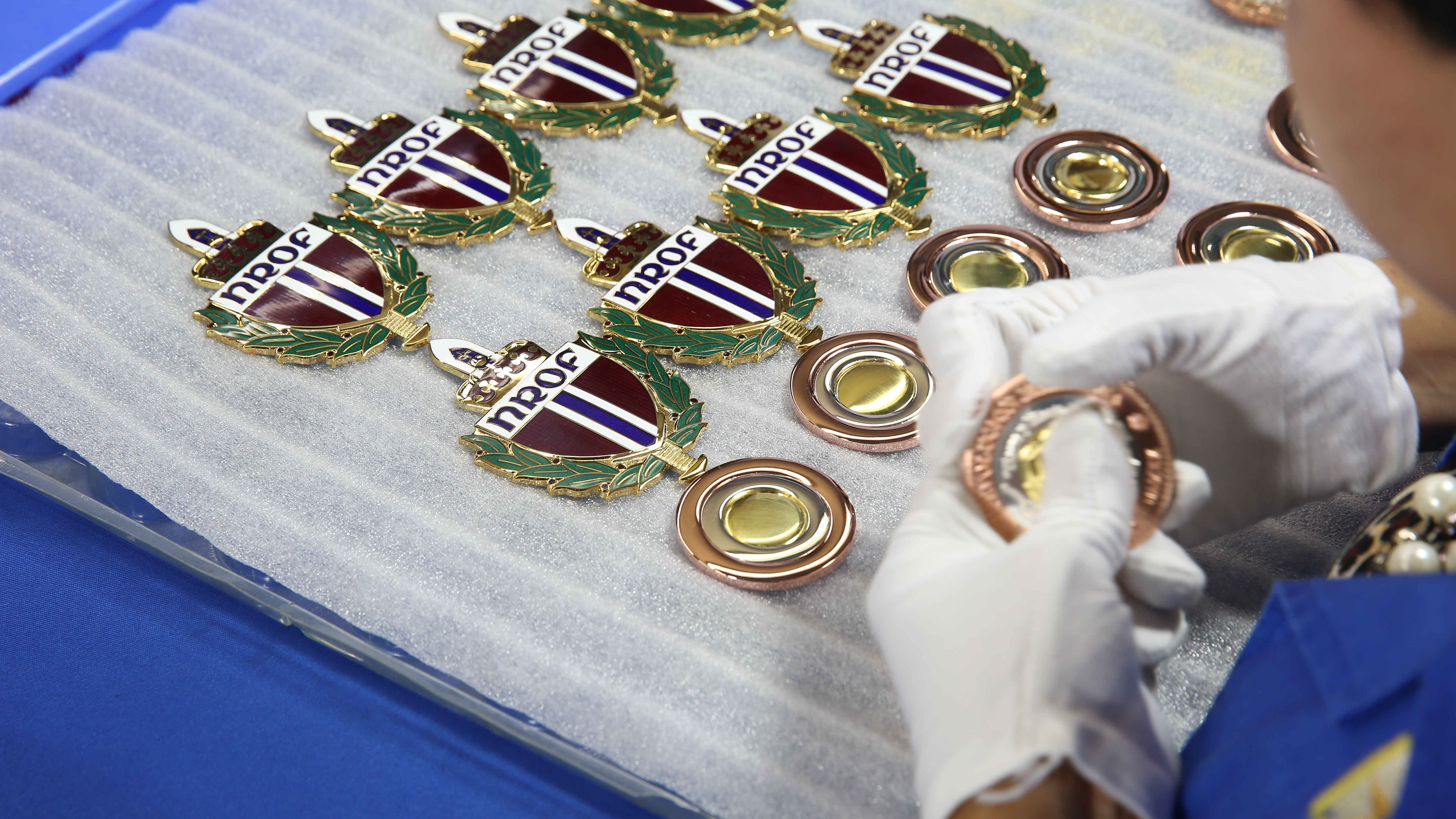 琺瑯徽章。即用琺瑯入色的方法制作的徽章,是最高端的入色工藝,常見于制作軍隊、國家機關證章及特別有紀念意義、要長久保存的證章、紀念幣、勛章等。